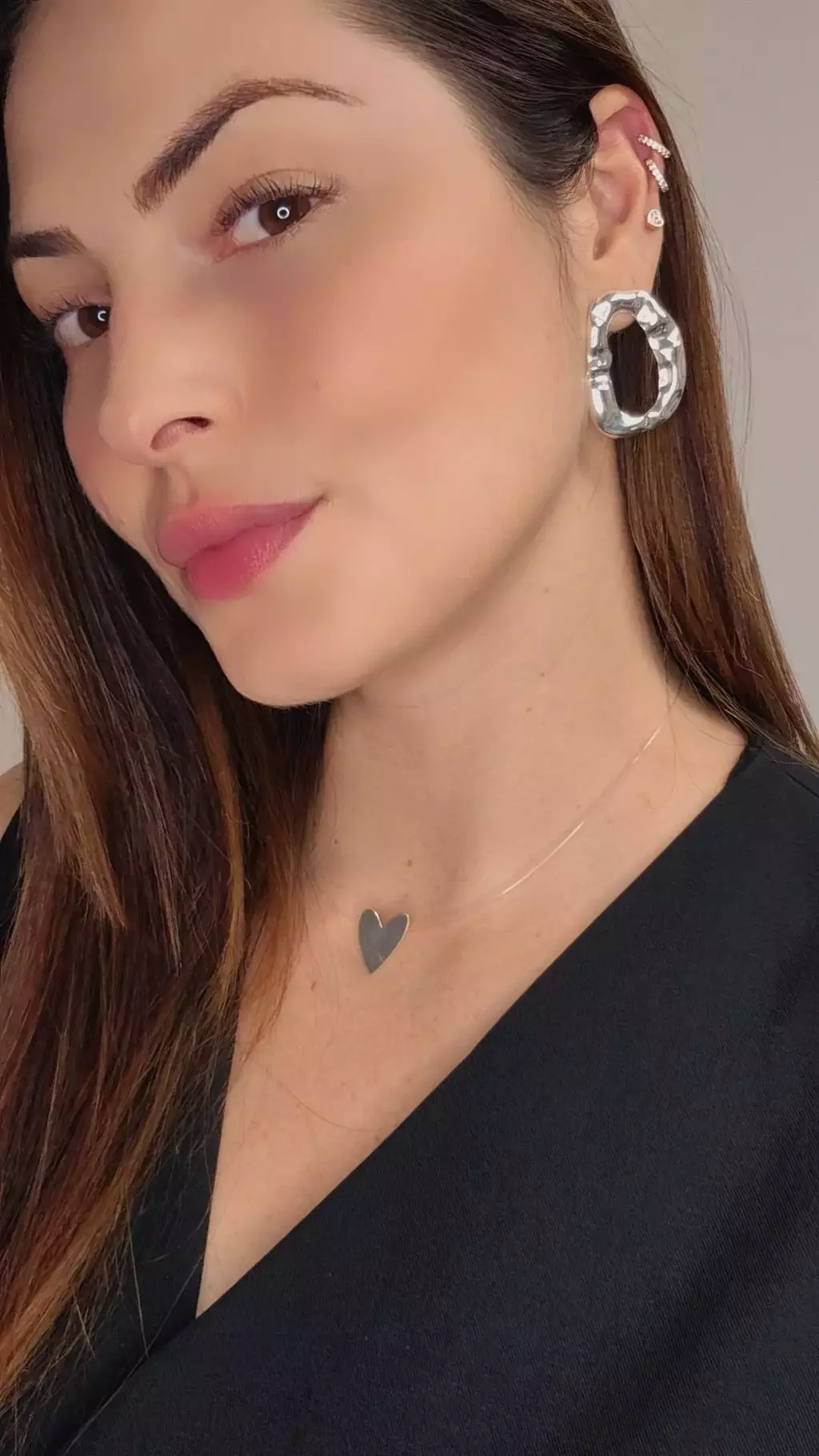 Brinco grande em formato orgânico, super leve, uma ótima opção para quem tem a orelha rasgada.