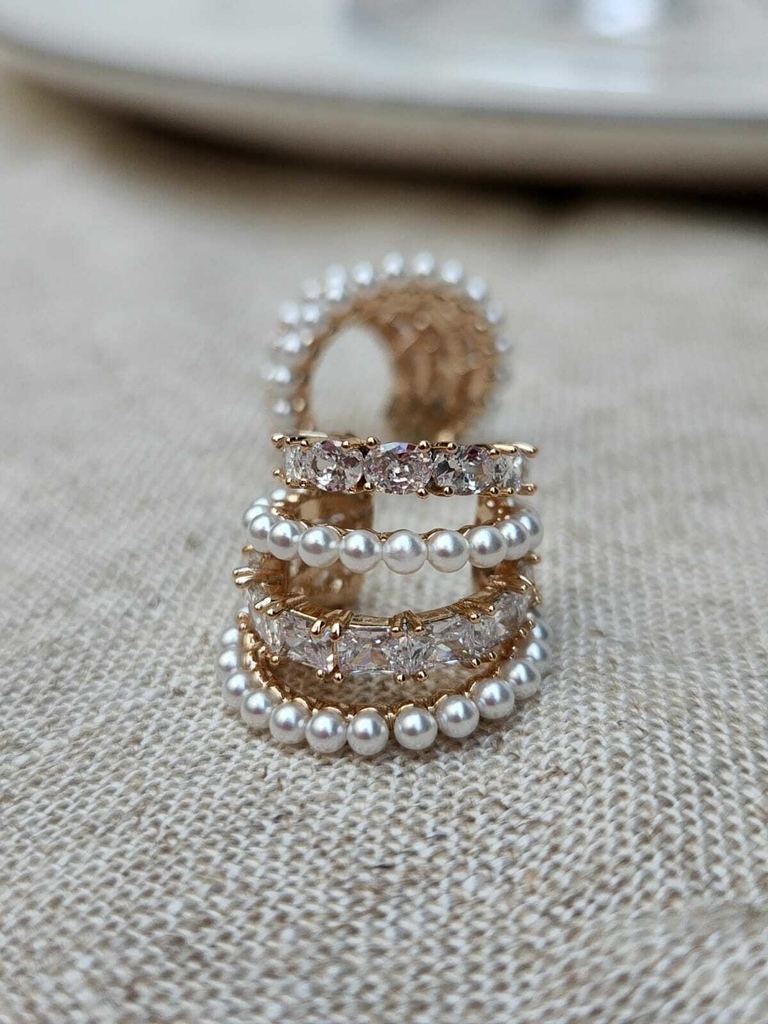 Piercing fake com 4 fileiras que intercalam entre zircônias e pérolas sintéticas