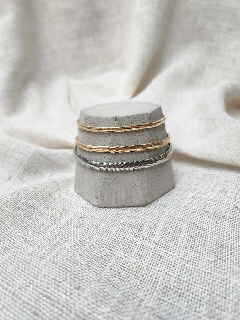 Pulseira em material estilo malha, super versátil, ideal para compor looks que vão de uma reunião na empresa á um casamento.